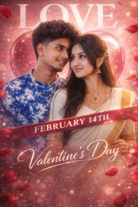 Create a high-end Valentine’s Day romantic poster using my uploaded couple photo.